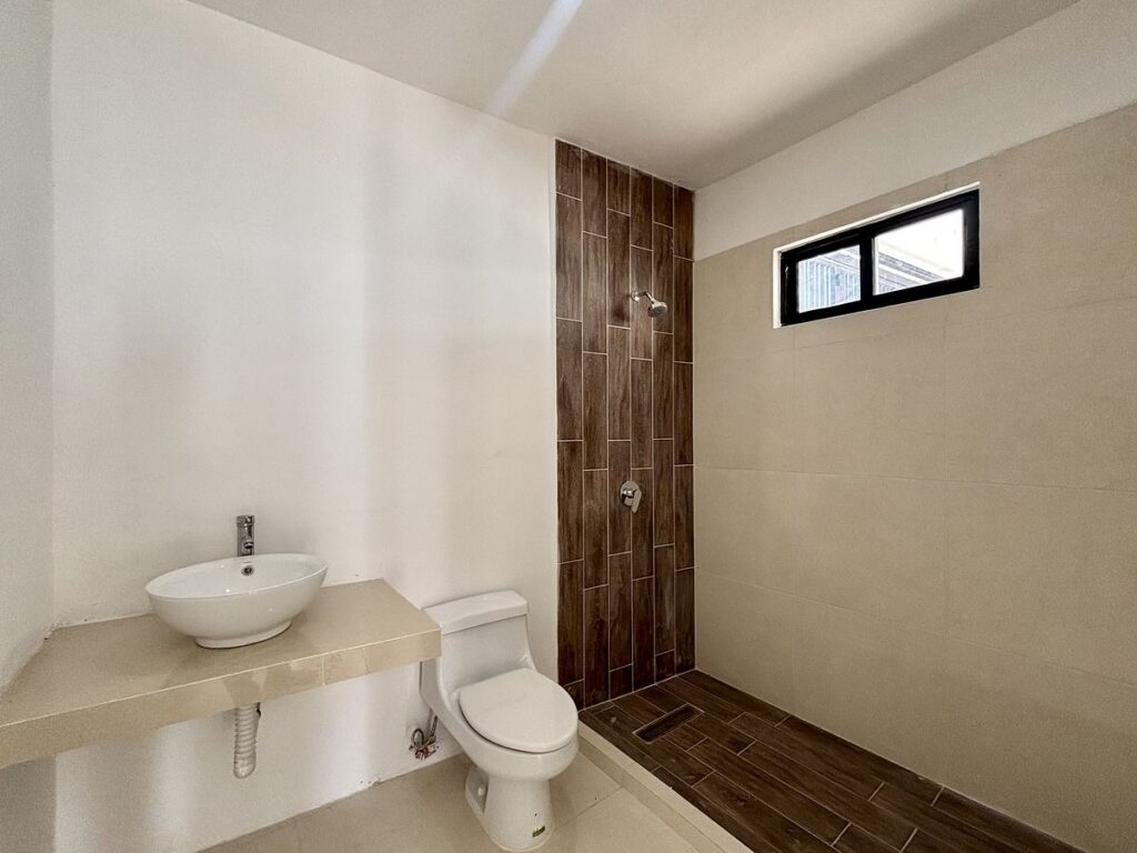 - Baño completo con área húmeda cubierta de mármol